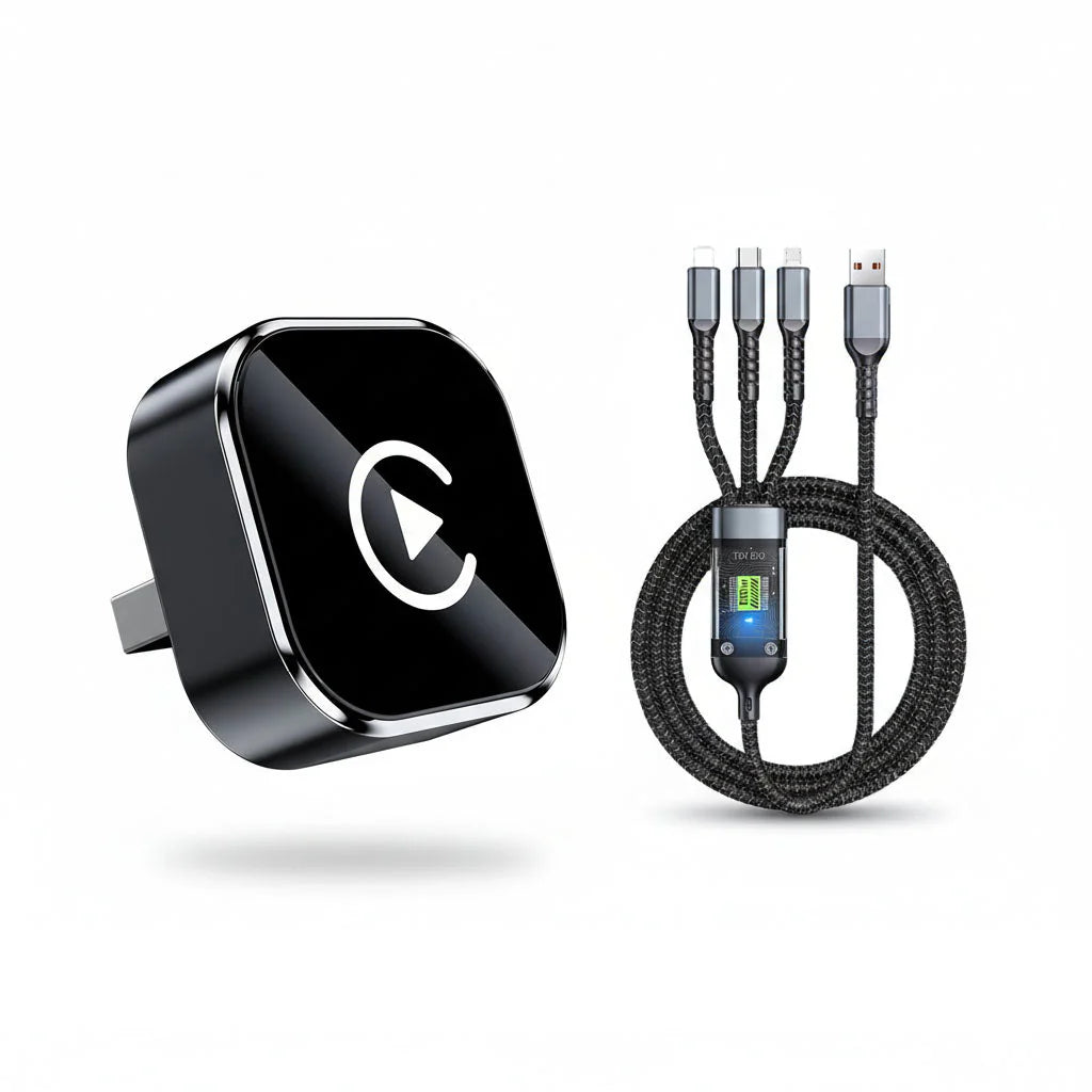 VAN BEDRADING NAAR DRAADLOOS, DIRECT SLIMER – Transformeer je bedrade Android Auto naar een draadloos systeem—geen rommelige kabels meer, terwijl alle functies behouden blijven, zoals navigatie, muziek en spraakbediening. Geniet van een opgeruimd dashboard en veiliger, handenvrij rijden.