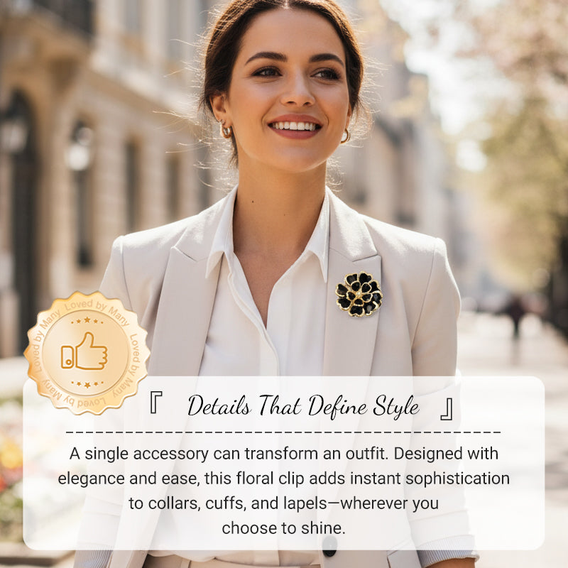ELEGANT FLORAL CRAFTSMANSHIP: Featuring a delicate floral motif with a glossy enamel finish and sparkling rhinestone accents. This exquisite detail brings a refined and feminine touch, adding a layer of luxury to your everyday attire.