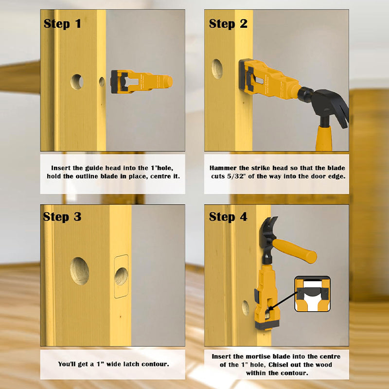 ACCURATE CUTTING WITHOUT MEASUREMENT: The door mortise tool features a unique design with an integrated head that allows for effortless insertion into a 1 inch hole. The outer contour automatically aligns itself.