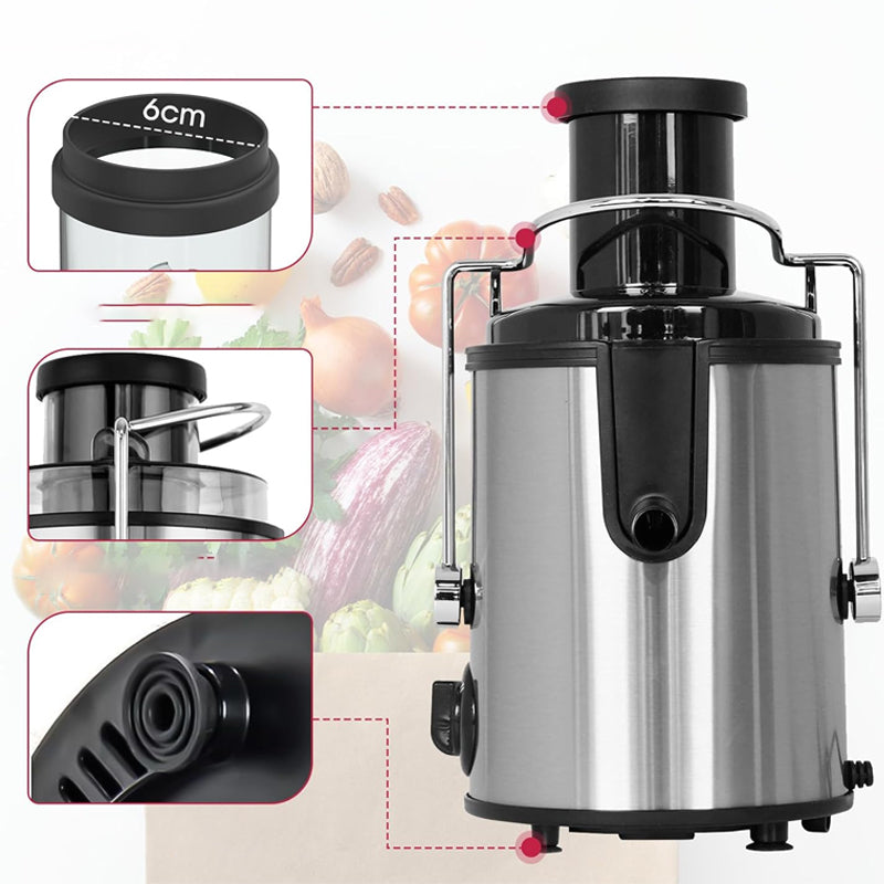 LARGE FEED CHUTE: The generous 2.6-inch wide feed chute allows you to juice whole fruits and vegetables, reducing prep time and allowing for a continuous juicing experience.