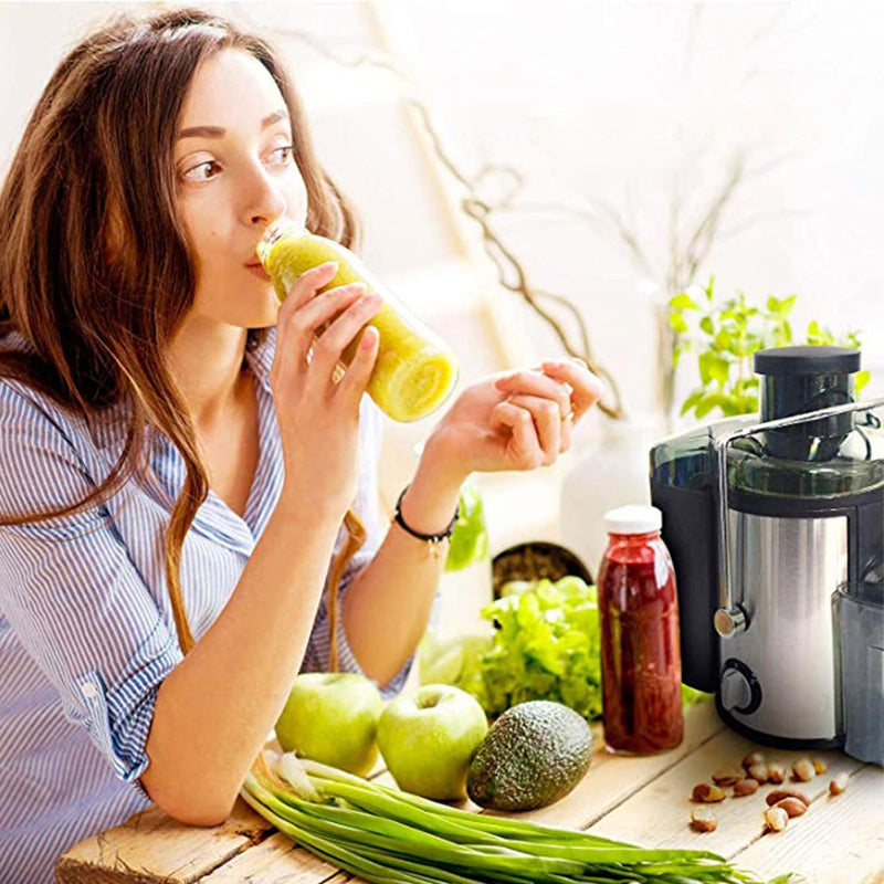 ANTI-DRIP FUNCTION: The built-in 500ml juice cup design prevents messy drips and spills, keeping your kitchen counter clean and tidy during and after juicing.